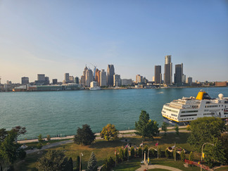 Our host hotel was the excellent Windsor DoubleTree by Hilton, located next to the Detroit River and Riverfront Trail with spectacular day and night Detroit cityscape views. Reserved hotel garage parking with overnight Viper security that the club had hired.