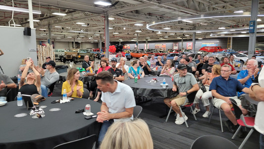 We were then off to the M1 Concours Center and to Prefix Garage located there. Prefix Garage services the vehicles of those who own private man-cave garages built next to the track. Prefix's Jhan Dolphin (pictured speaking) and Scot Rickord welcomed us there.